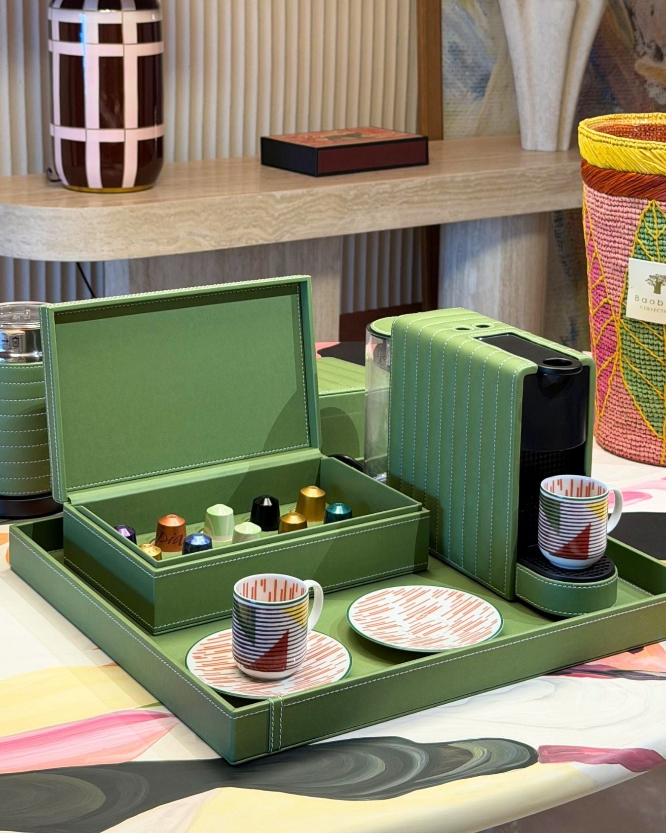 Indulge in our premium range of Nespresso coffee machines, cladded in luxurious vegan leather. These sophisticated machines are not just appliances but statement pieces that enhance any kitchen or living space. Designed between Kuwait and the UAE, and handcrafted in the UAE, our coffee machines and accessories have become a sensation on Instagram for their unparalleled elegance and superior performance.