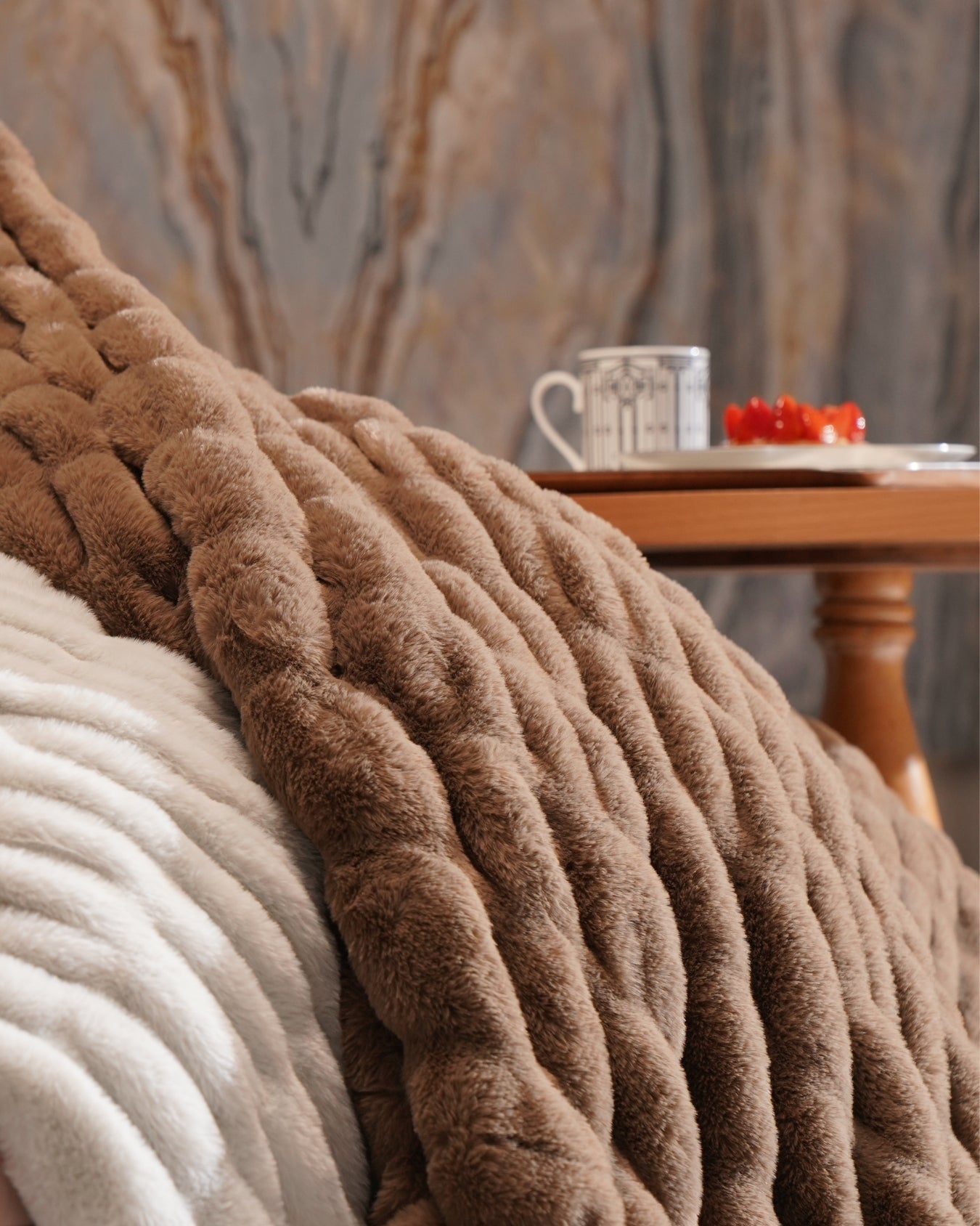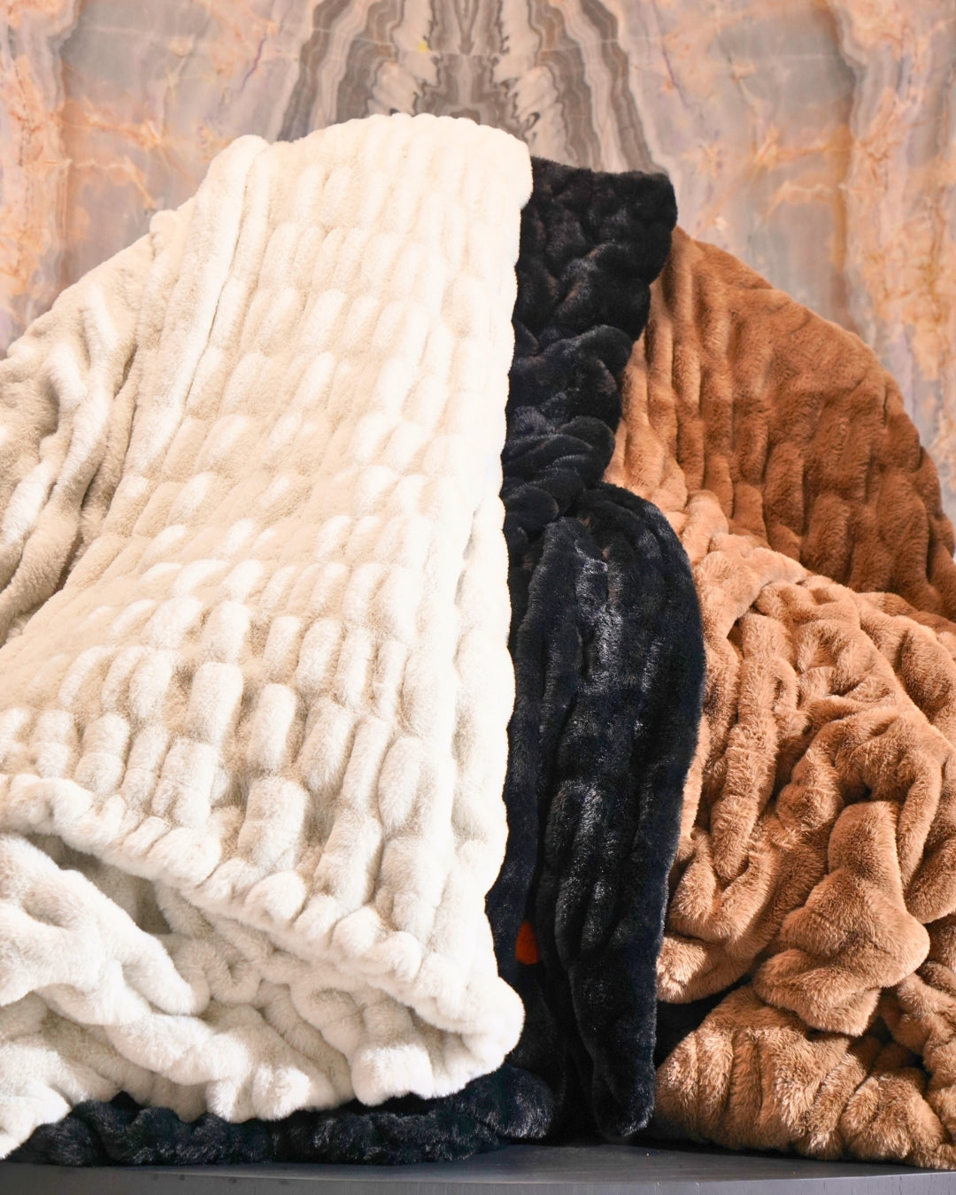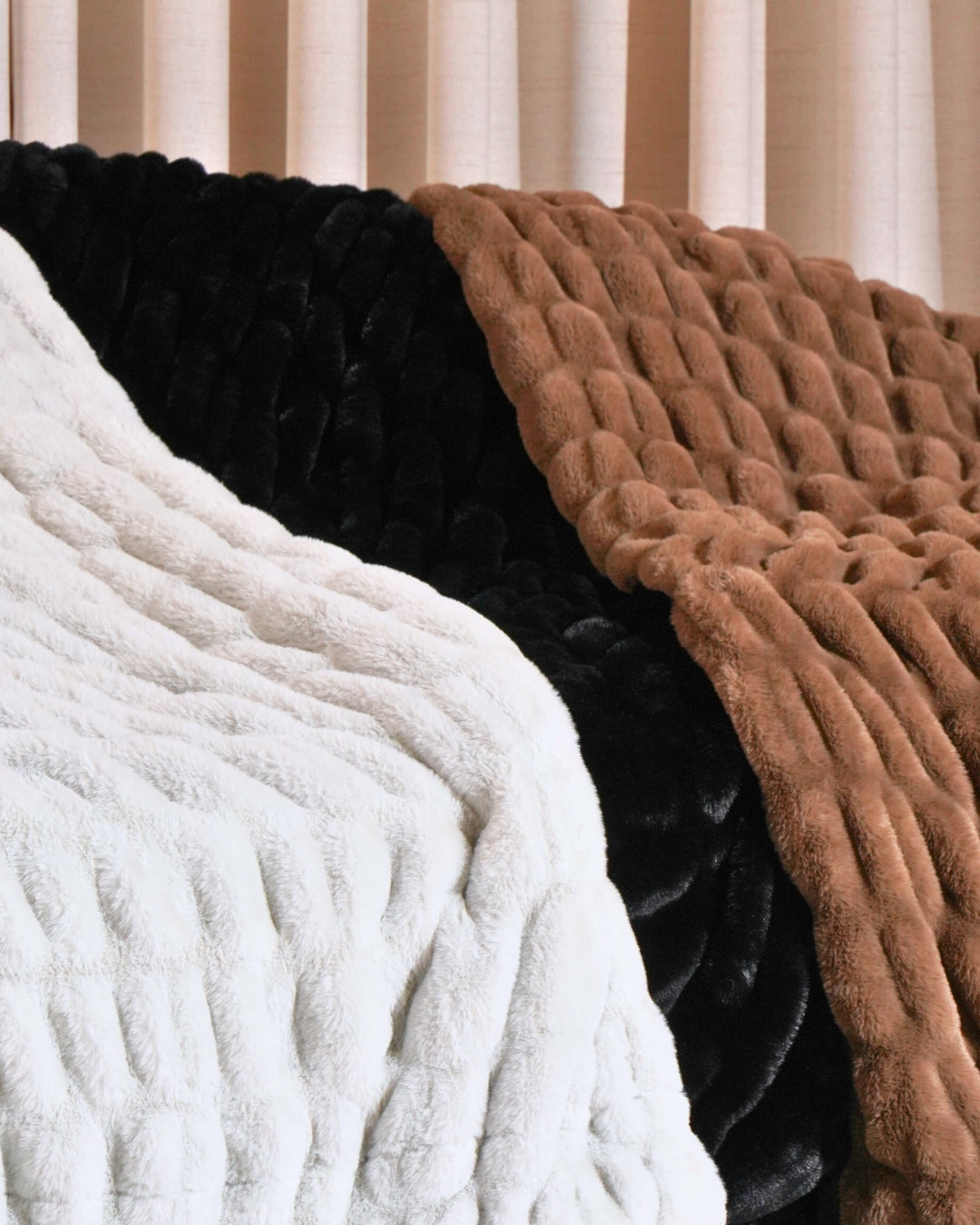 Our cruelty-free Fluff blankets blend softness and sophistication, handcrafted in limited quantities for the few who value true exclusivity.